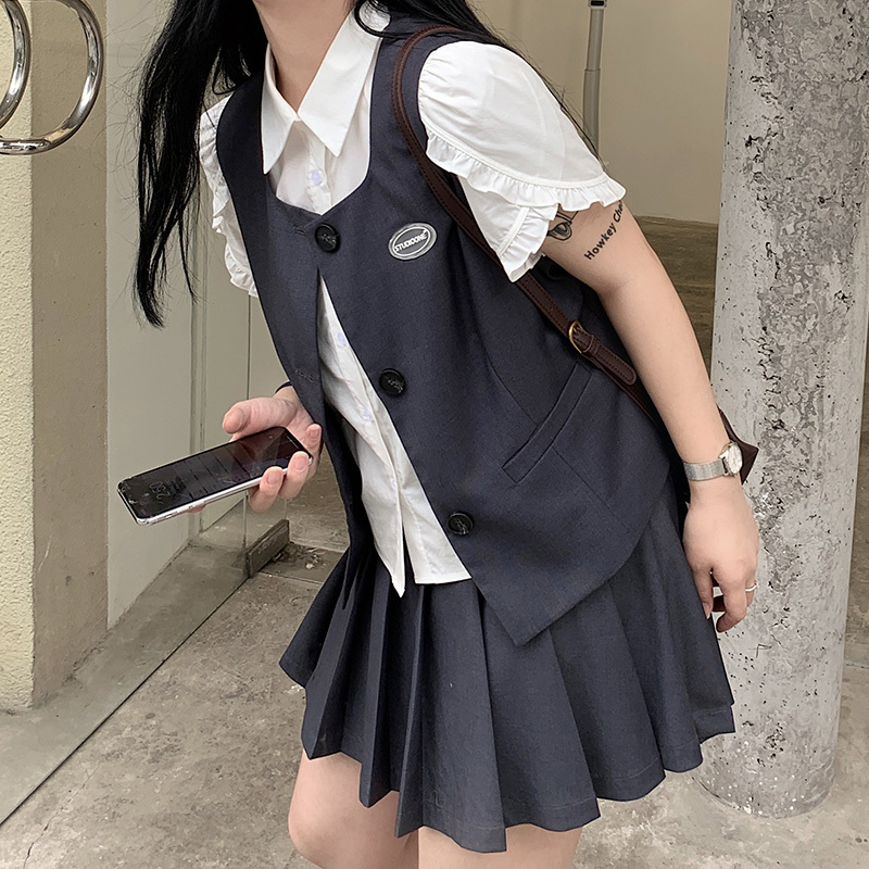 日系學(xué)院風(fēng)顯瘦休閑馬甲+百褶